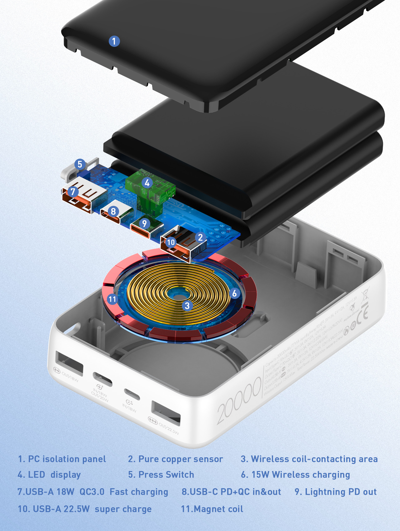 ظرفیت ۲۰۰۰۰ میلی آمپر وایرلس یا مگ سیف برای آیفون MAG SAFE